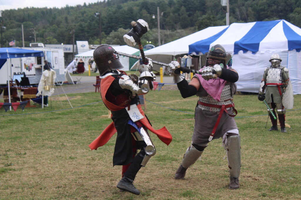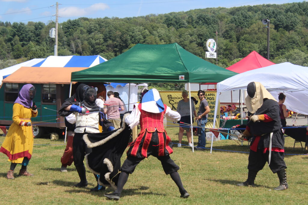 Recently our Shire hosted a Demo at the Upstate Renaissance Faire in Norwich NY . We were aided by those from nearby scadians from Delftwood, Coopertree, and Myrkaelinn with Heavy & Rapier fighters and beautiful A&S Displays. We even had Lord Garrett from East Kingdom!